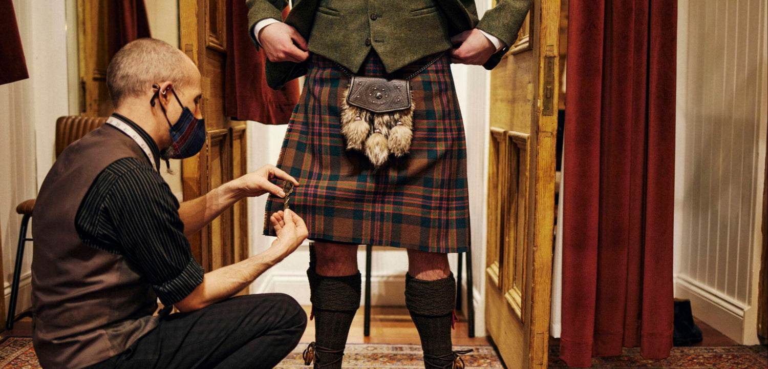 Our kilt hire specialists will help you find the perfect outfit for your special occasion. Book your kilt hire online or visit our Edinburgh store for a fitting.