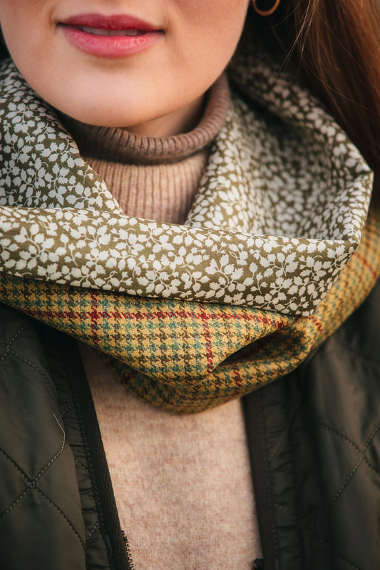 Classic Check Lovat Tweed Cowl lined with Liberty Fabrics by LoullyMakes