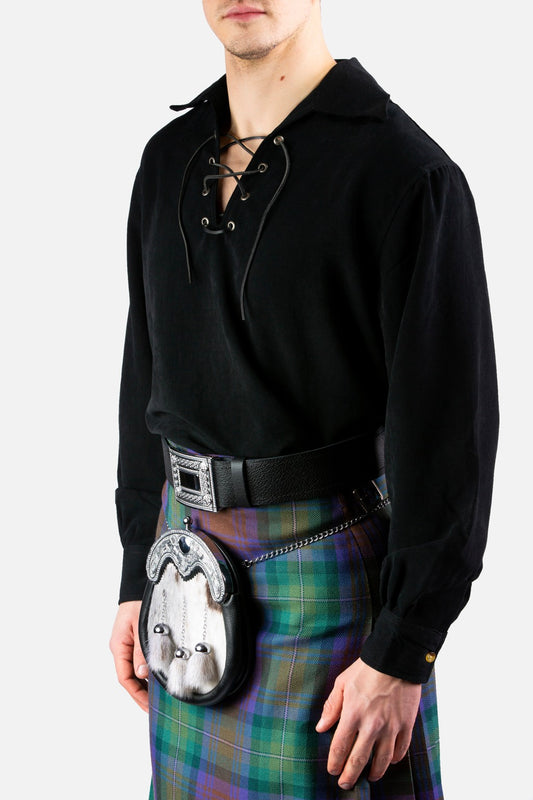 Worn without a jacket, the heavyweight ghillie shirt is a popular choice for romancing the lassies and Highland Games.
