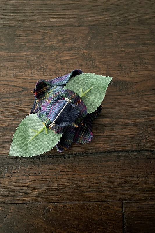 Handmade Tartan Rose Brooch