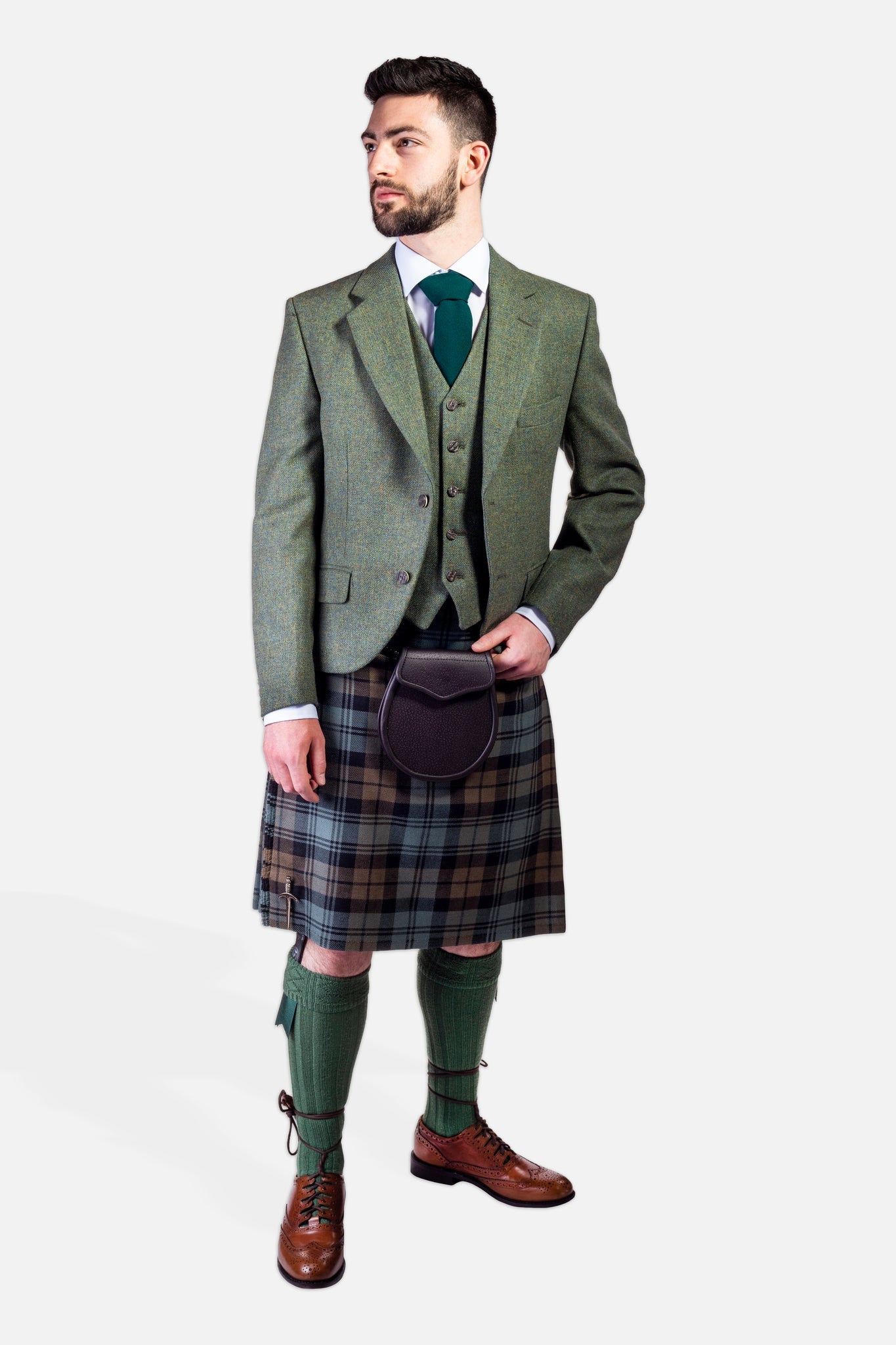 View Lovat Green Tweed outfitsContemporary highlandwear at its finest, the Lovat Green Tweed combines a modern aesthetic with luxurious heritage fabrics and quality craftsmanship.