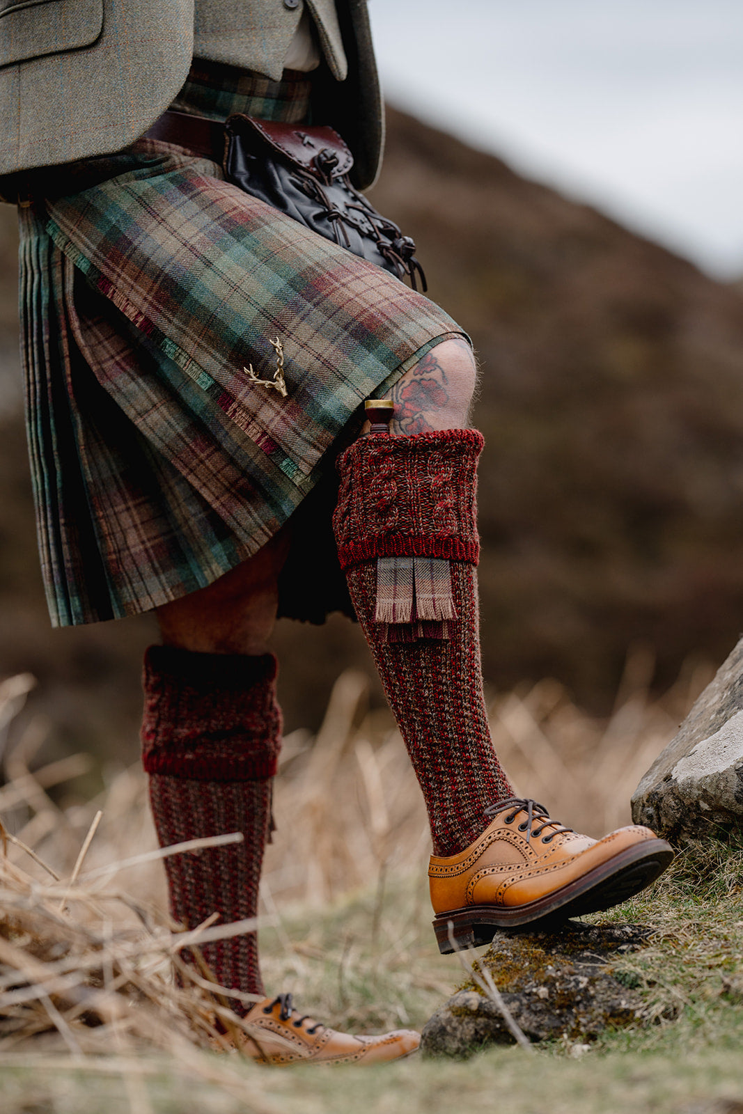This tartan truly captures the mood and misty tones of Scottish Highland landscapes, incorporating beautiful shades of deep blue and purple, with vivid highlights of magenta, rich green and warm gold.