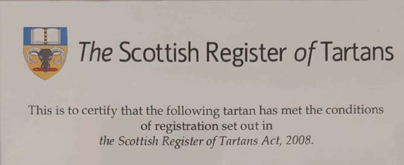 Your final tartan will be registered with the Scottish Register of Tartans and appear on its website. Standard Package customers will receive an unframed copy of the certificate - Premium Package customers, a framed one.