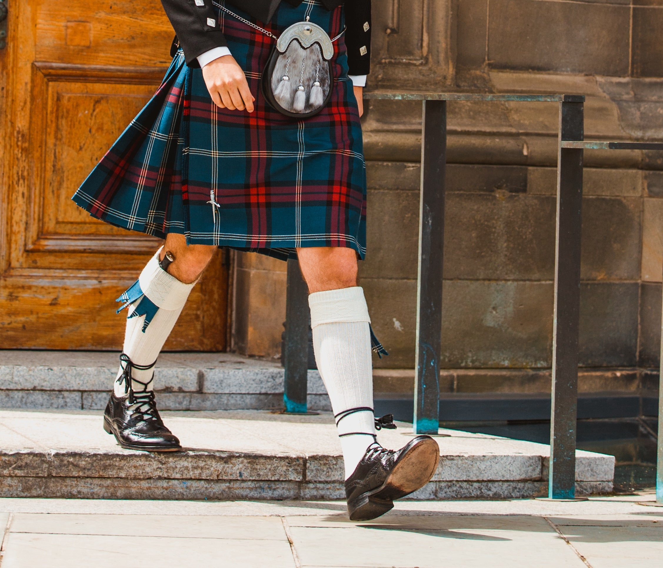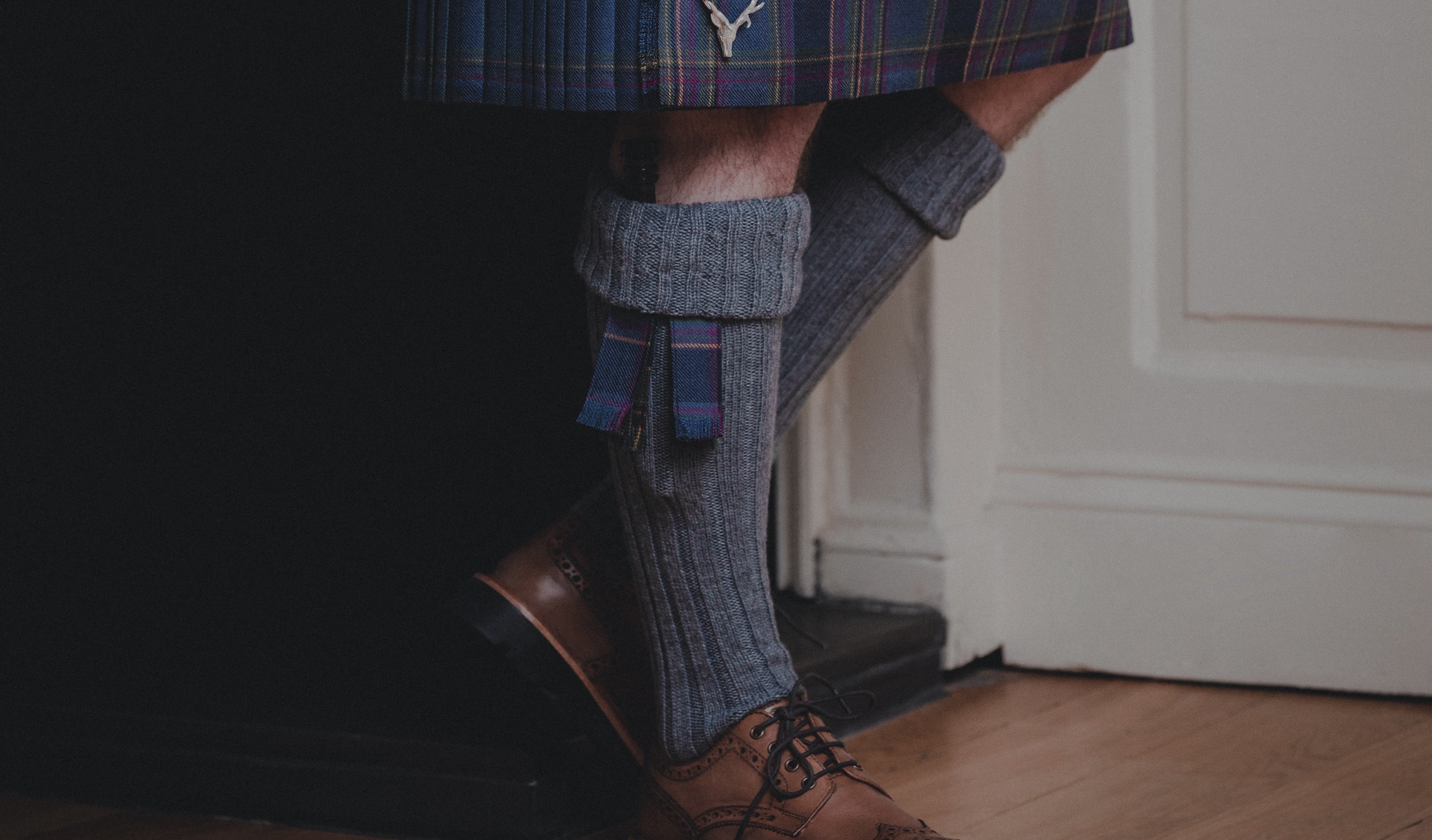 We Scots are a hardy people, unafraid to roll up our trews for a paddle in the North Sea or the occasional sub-zero picnic. But we know how to stay warm. And believe us when we say that 8 yards of pleated wool is the best way to do it, and where the kilt ends, the hose* begin. Substantial long socks made of thick knit, they’re far less likely to soak up water and slap against your legs than trousers. It’s almost like we know what we’re doing.