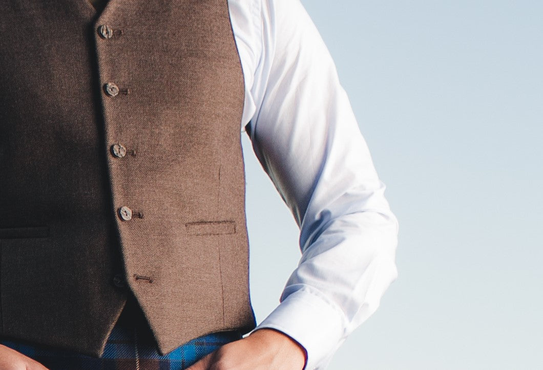 The waistcoat goes on next - if you are wearing a tweed jacket, leave the bottom button undone.
