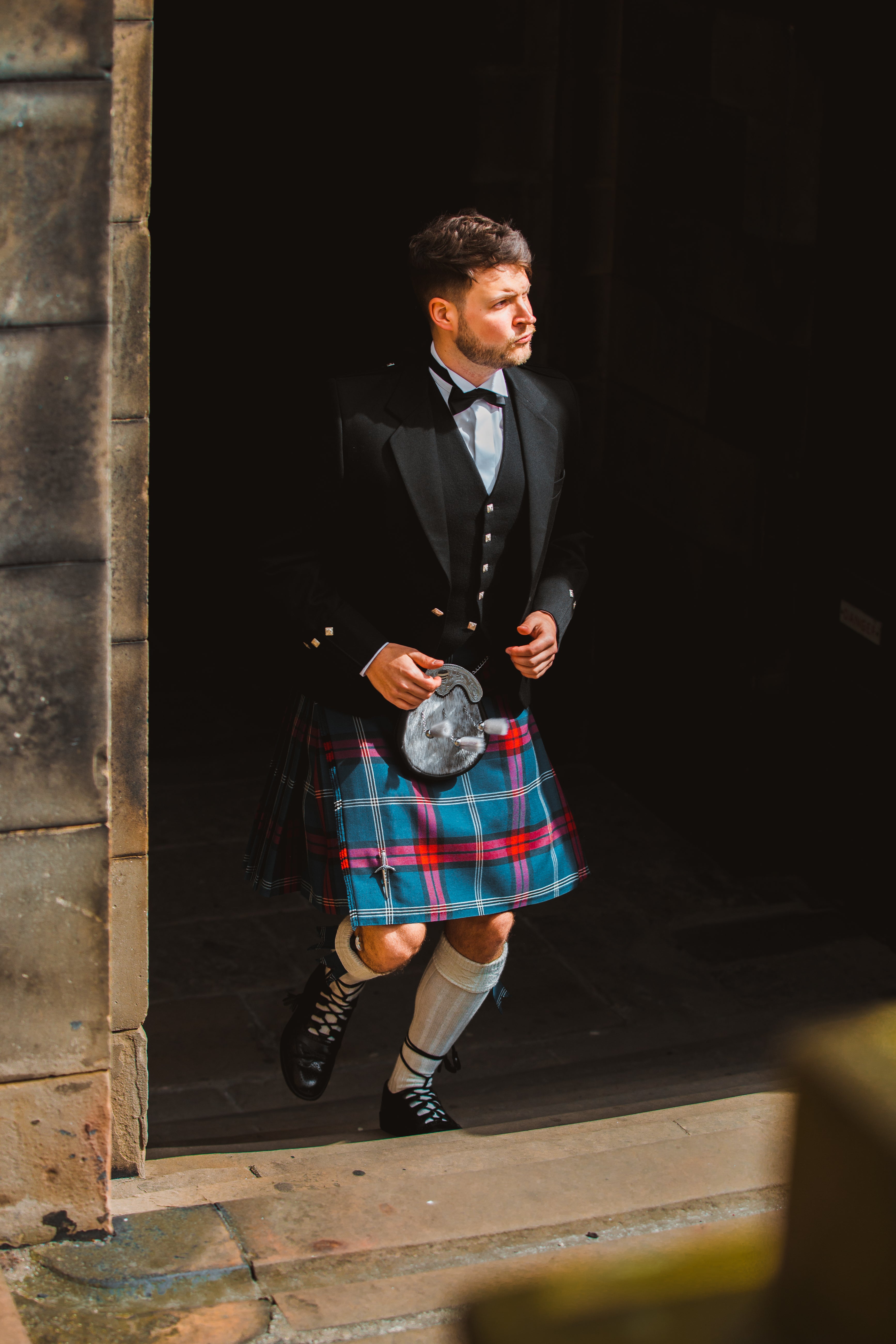 Tweeds are the go-to choice for weathered tartan fans, but they look wonderful with virtually everything. Try holding one of these jackets against different cloths and you’ll be amazed by the unexpected colours that pop out of its dense weave. Like the Holyrood, tweeds can be styled up and down. Match your sporran to the event (full fur for evening wear, a military day sporran for a romantic stroll in the park etc) and go from there. Brogues are a popular alternative to ghillie brogues, well-suited to the Tweed’s nonchalant-luxury vibe. We like the look of a brown accessory. But nobody likes a kiltmaker with too many opinions.