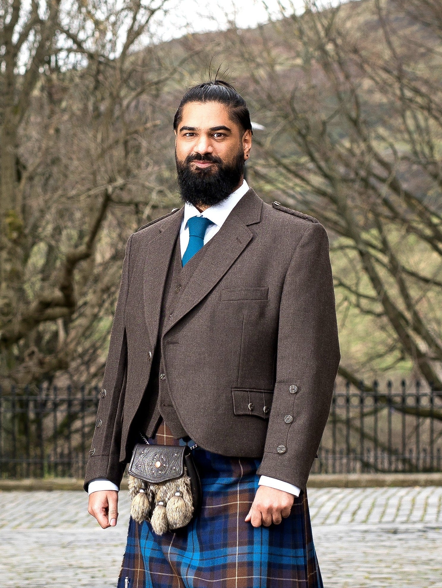 Tweeds are the go-to choice for weathered tartan fans, but they look wonderful with virtually everything. Try holding one of these jackets against different cloths and you’ll be amazed by the unexpected colours that pop out of its dense weave. Like the Holyrood, tweeds can be styled up and down. Match your sporran to the event (full fur for evening wear, a military day sporran for a romantic stroll in the park etc) and go from there. Brogues are a popular alternative to ghillie brogues, well-suited to the Tweed’s nonchalant-luxury vibe. We like the look of a brown accessory. But nobody likes a kiltmaker with too many opinions.