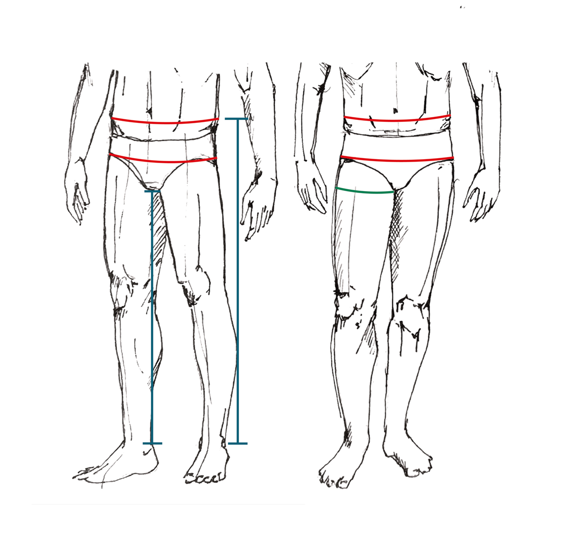 Hip: A loose measurement at the widest part of your seat.* (GNK Tip: The hip size should be a minimum of 5" bigger than the waist size - 6”-8” is our average).