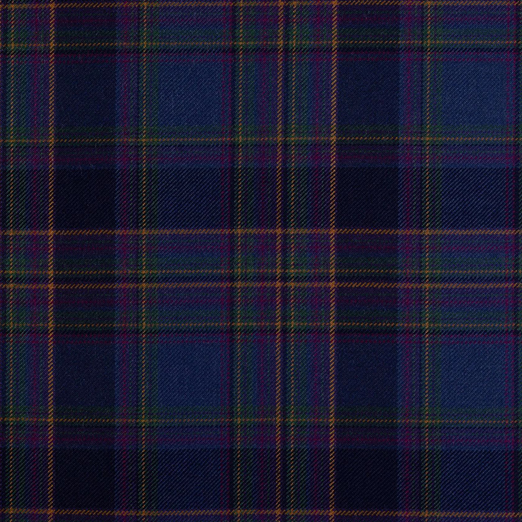 This tartan truly captures the mood and misty tones of Scottish Highland landscapes, incorporating beautiful shades of deep blue and purple, with vivid highlights of magenta, rich green and warm gold.