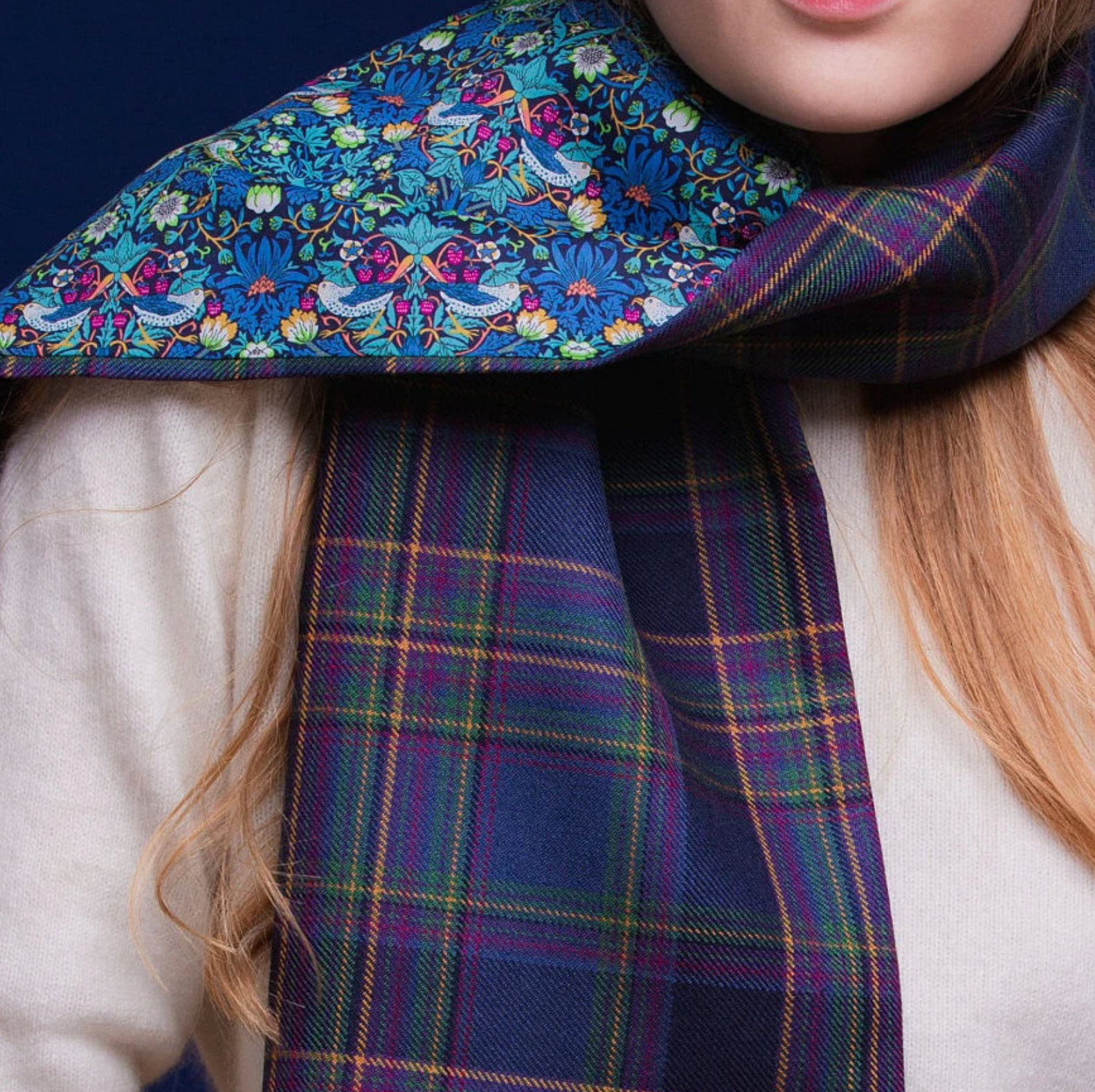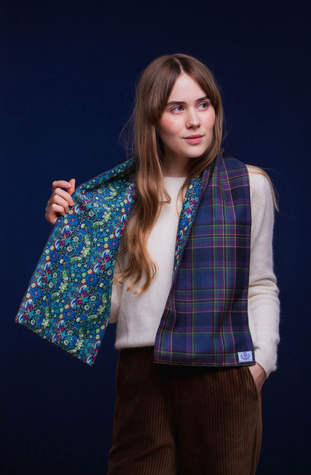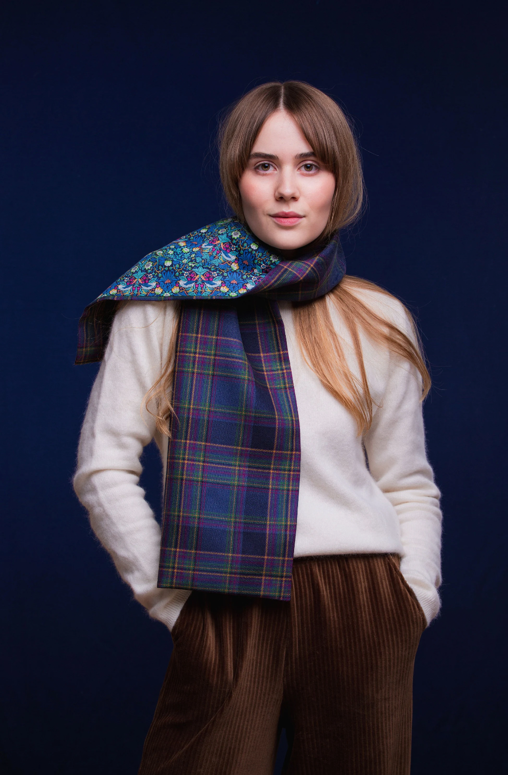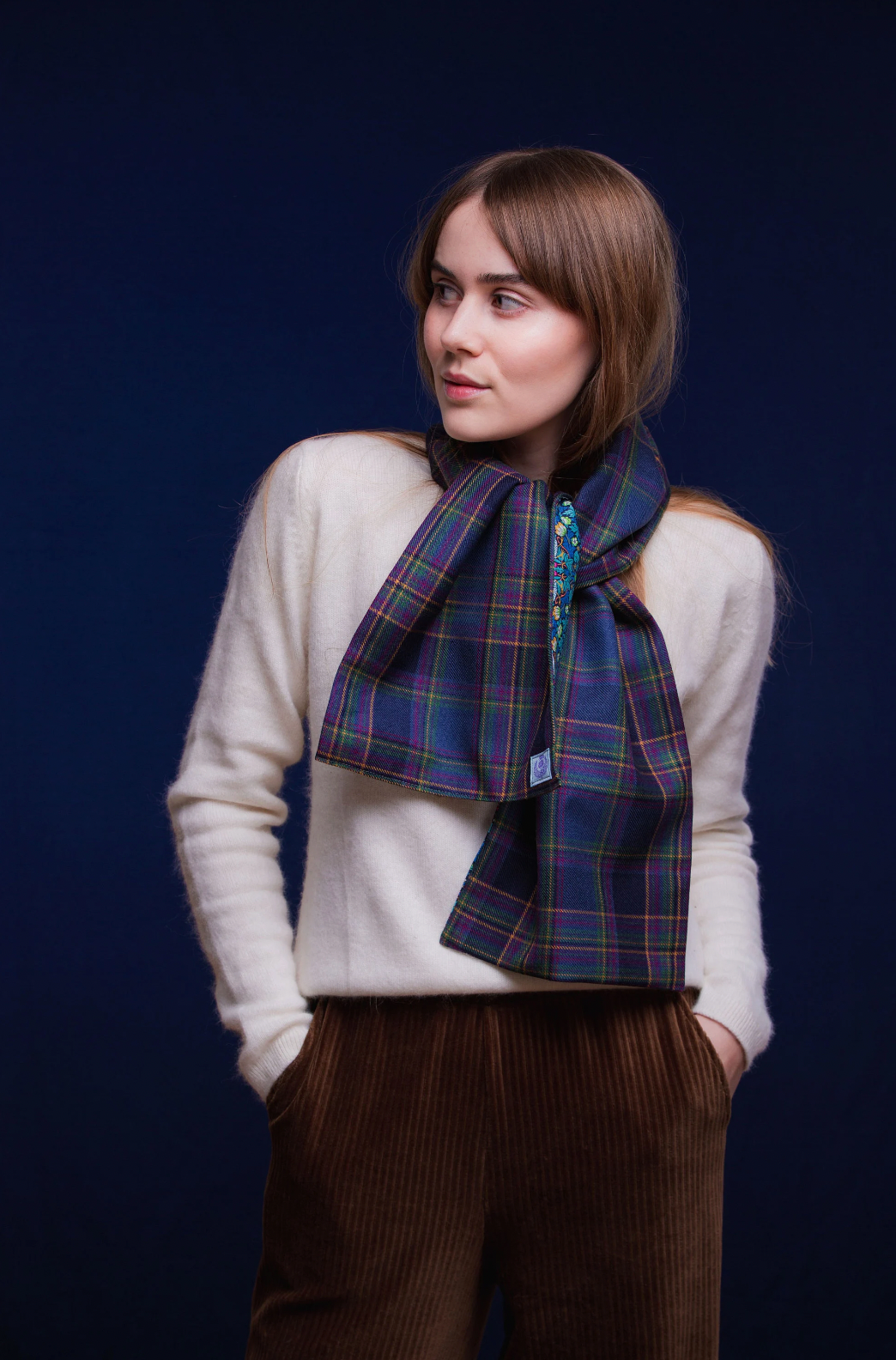 Classic Long scarf in our exclusive Highland Mist tartan with Liberty Fabrics 100% cotton lining, carefully designed and handmade in Scotland by LoullyMakes .