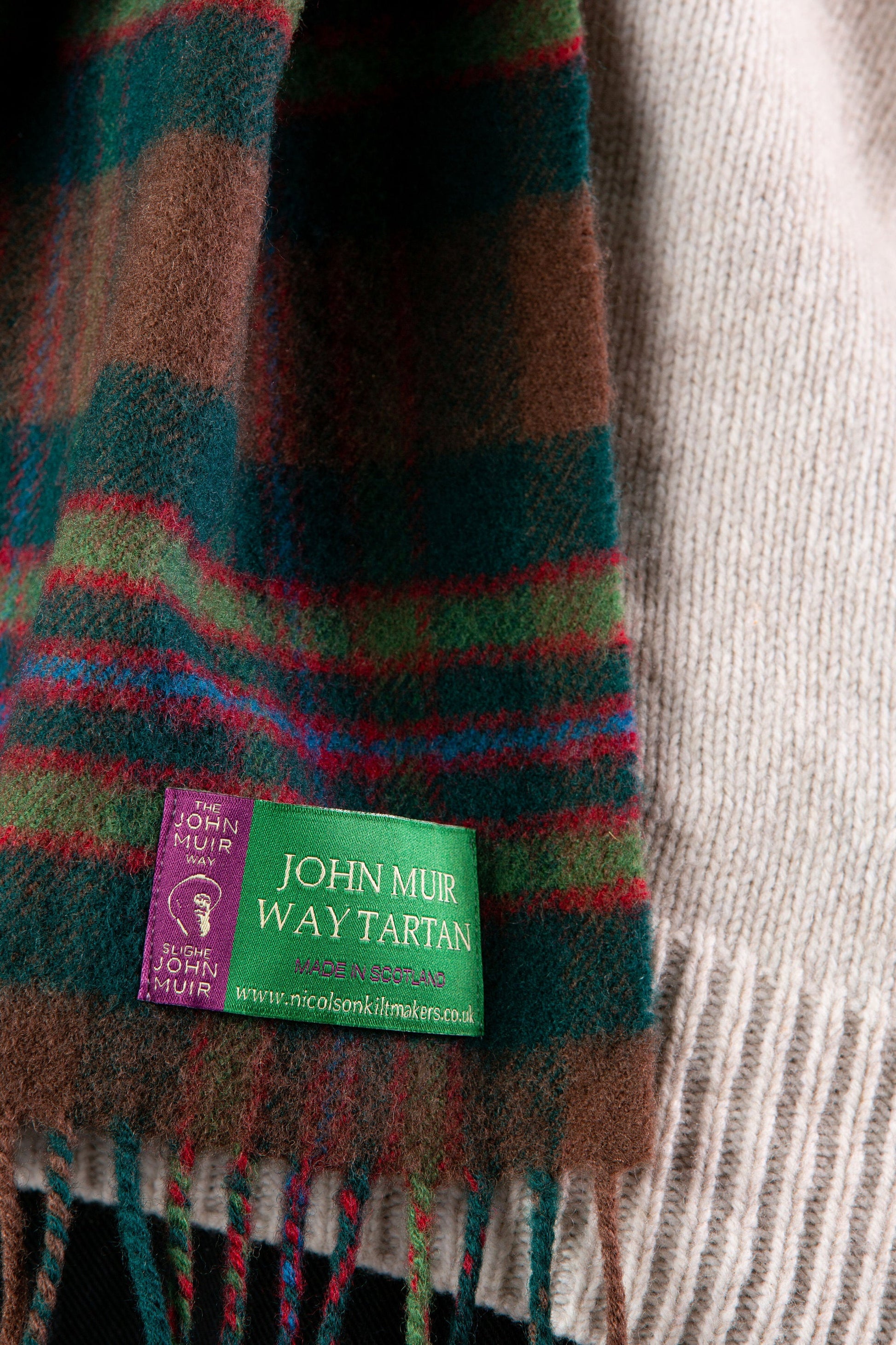 John Muir Way Tartan was designed and registered in 2014 by Gordon Nicolson to commemorate the opening of The John Muir Way walking & activity route which spans Scotland from John Muirs Scottish Birthplace of Dunbar in the East, to Helensburgh on the West Coast.